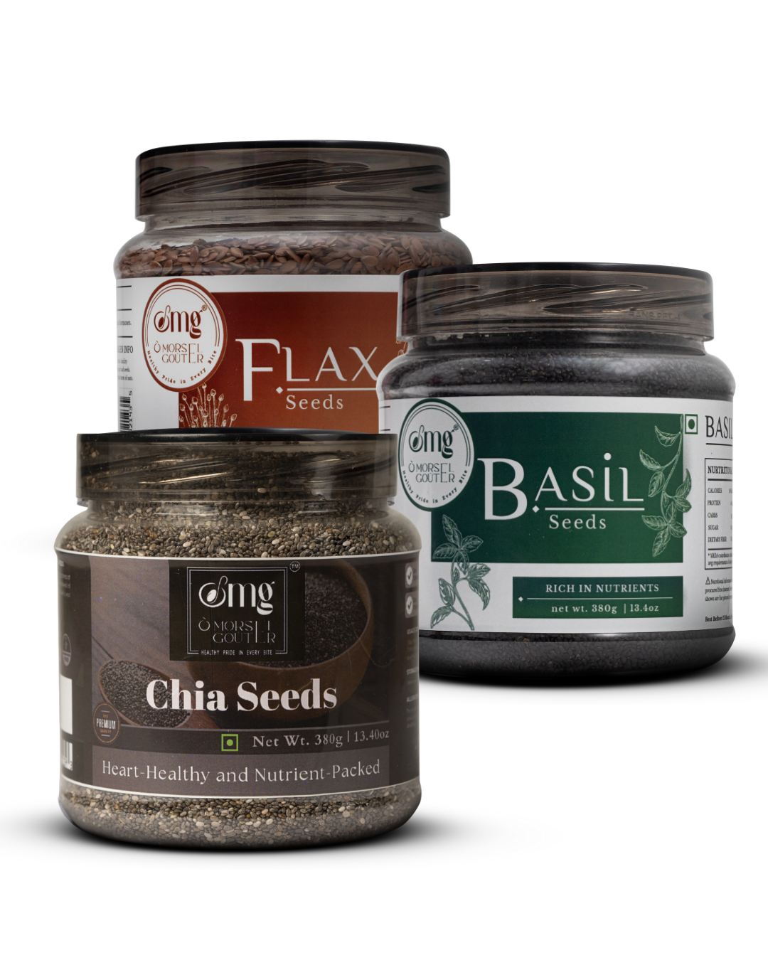 Basil (380g) + Flax (380g) + Chia (380g).